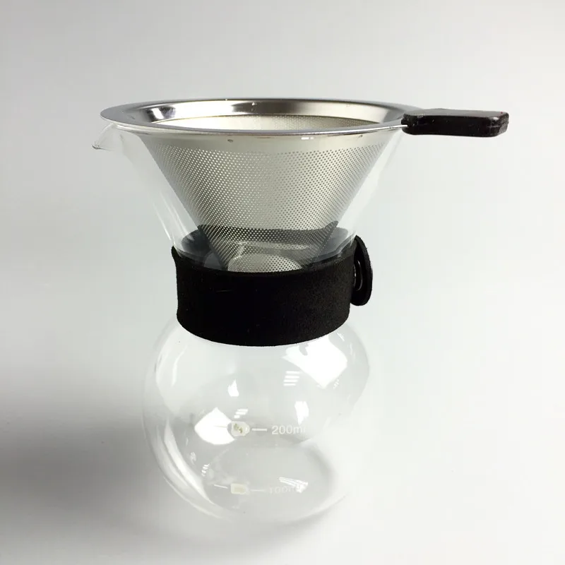BEST 200ml Glass Coffee Pot and Stainless Steel Filters Set Portable Drip Coffee Dripper Percolator v60